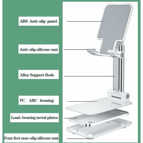 Il nostro supporto per cellulare è conforme al design ergonomico. L’altezza può essere facilmente regolata tra 6cm-14cm.