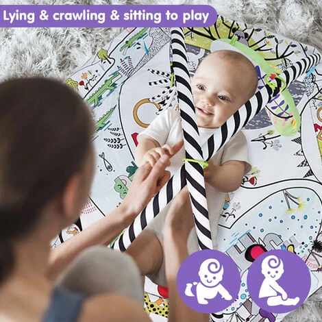 SUPPORTA LO SVILUPPO: Progettato in colori contrastanti per stimolare la vista del bambino durante i primi mesi di vita. Giocattoli colorati di diverse trame stimolano il tatto e incoraggiano anche i bambini ad allungare le braccia. Il tappeto crea uno spazio confortevole in cui il bambino può imparare a girarsi e guardare in alto.