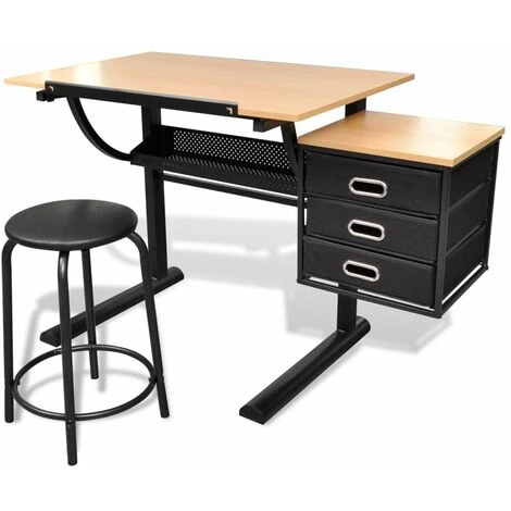 Questo tavolo di alta qualità, con piano ribaltabile inclinabile, offre molto spazio per il lavoro, il che lo rende perfettamente adatto allo studio e al disegno tecnico. Il foglio Tappo mantiene la carta sul tavolo mentre la parte superiore è inclinata. Il nostro tavolo da scrittura ha anche tre cassetti estraibili per ulteriore spazio di archiviazione. Lo sgabello incluso è spesso imbottito per farvi stare comodi mentre lavorate.