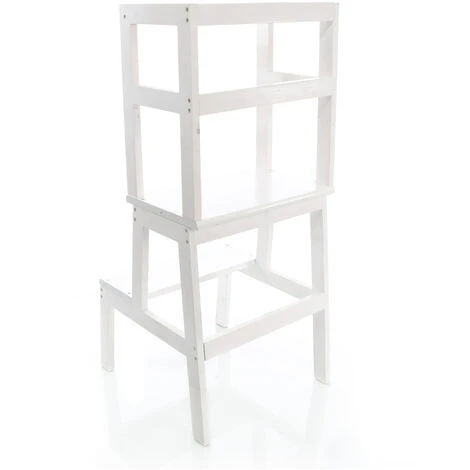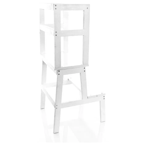 La ringhiera intorno e la traversa sul retro impediscono di cadere dallo sgabello. I piedini antiscivolo garantiscono una maggiore sicurezza. Importante: non lasciare mai che il bambino utilizzi la torre didattica senza supervisione!