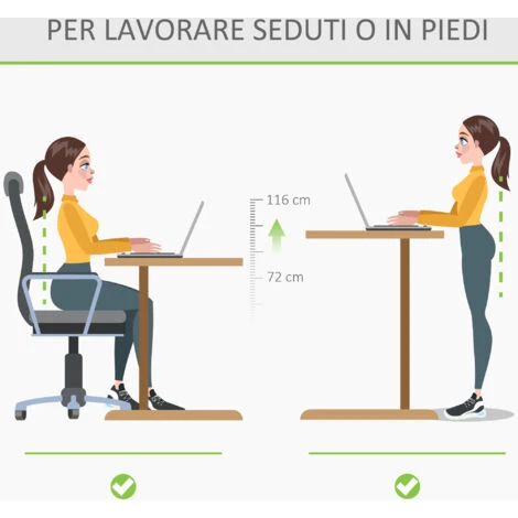 Sedere a lungo per lavorare al PC ti stanca? La scrivania sollevabile Vinsetto permette di lavorare sia seduti sia in piedi. È dotata di 4 altezze preimpostate e regolabili elettronicamente, è sufficiente premere il pulsante (1.2.3.4) per 2 secondi per raggiungere il livello di altezza di cui hai bisogno. Il sistema anticollisione e la protezione dal surriscaldamento garantiscono un uso in totale sicurezza.