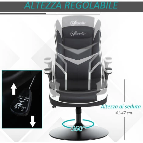 Scegli la sedia da gaming Vinsetto e non te ne pentirai. Puoi metterla a casa, usarla come sedia da ufficio oppure per giocare online. L’altezza della seduta può essere regolata per adattarsi alla tua scrivania e grazie ai braccioli pieghevoli puoi spingere la sedia completamente sotto al tavolo per risparmiare spazio. Rivestimento in PVC, resistente e facile da pulire. La base fissa a piedistallo è robusta e garantisce la massima stabilità della sedia.
