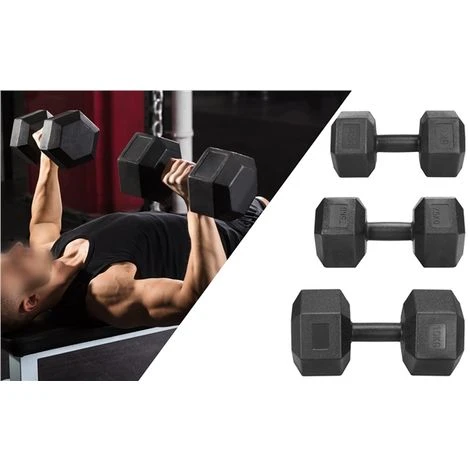 – Forma Esagonale: le testine esagonali facilitano l’uso e lo spostamento, evitando che i manubri rotolino. Il rivestimento in PVC sulle testine funge da strato protettivo per ridurre ammaccature e graffi sul pavimento.